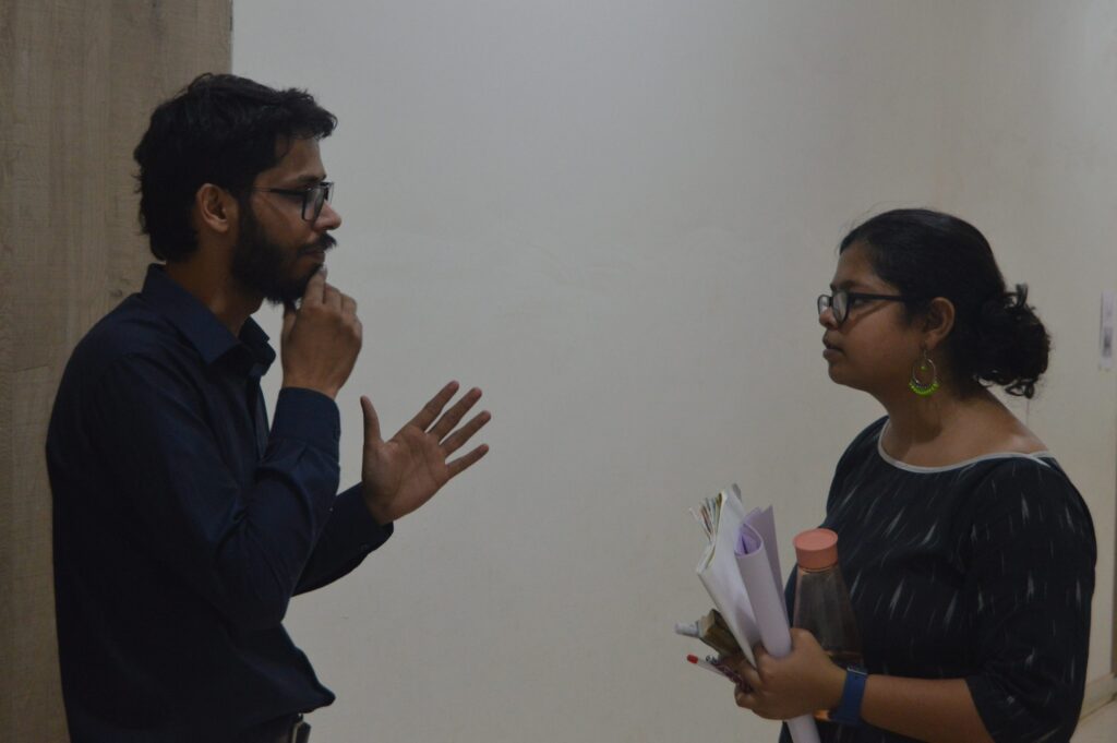 Ankit speaks with Ankita (the English teacher) after a class for a quick check on the progress of students and reiterating expectations around learning culture.