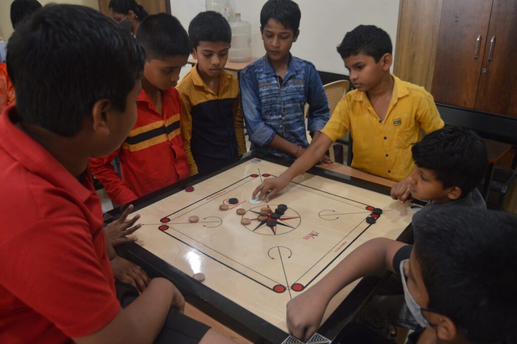 One of the rooms in the school is designated as an activity room where students play carrom and dance to music during the break. The team plans to introduce more board and card games to school soon.