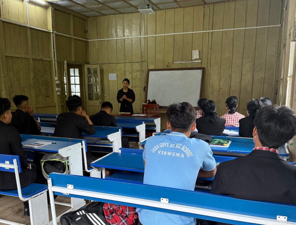 Ms Peleno teaches English & Alternative English (study and analysis of literary works, including Indian writings in English and global classics) to grades 11 – 12 at John Government Higher Secondary School, Viswema, Kohima. She believes that teaching goes beyond textbooks. For her, it is about ensuring students’ dignity, opening doors for more opportunities. It is about giving children the confidence to write their own stories and to remind them that their dreams are worth fighting for. That vision is what connects every student’s journey to her own. She says-