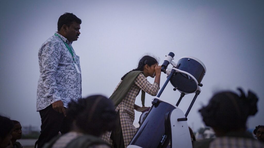 - Scientific literacy advanced: Instilled scientific temper in rural communities through accessible astronomy, ecology, and research experiences. 25,000+ students observed lunar mountains, craters, and seas; thousands of students reached through Science on Wheels mobile lab across remote villages in Andhra Pradesh; 500+ rural students annually benefit from the Budding Scientist Program.