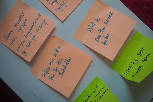 Participant groups shared some of the design principles (short, small, tangible, flexible, meaningful etc.) if they were to design micro-improvements for their stakeholders and used the co-creation wall to display their ideas.