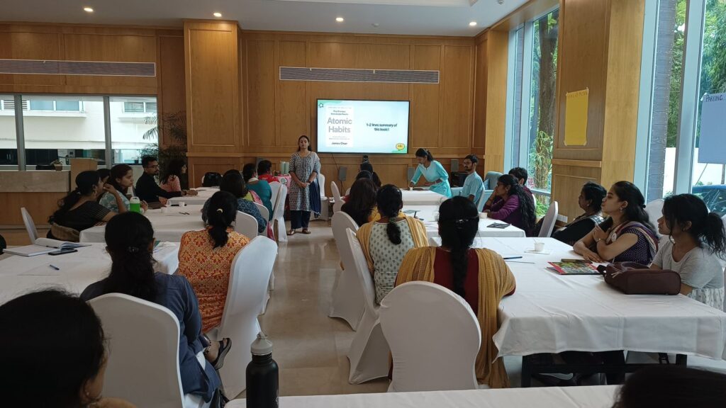 Participants delved into the transformative impact of small improvements, drawing inspiration from the book “Atomic Habits” (which illustrates the power of small, incremental steps in building and sustaining positive habits). Participants then shared their experiences on how they can achieve a lot both in their personal and professional lives by undertaking small steps. For example, one participant shared how they managed to enhance their reading habit to successfully complete a book by dedicating just 10 minutes to reading every day. Another participant explained how they elevated their batting skills by committing a consistent amount of time each day to practise the sport.