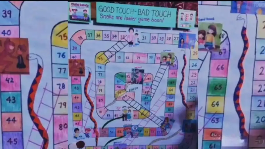 At the heart of her project lies a creative adaptation of the classic game of snakes and ladders. The snakes symbolise potential abusers, teaching children to assertively say “NO” when faced with unsafe situations. While the ladders represent supportive individuals or positive influences, reinforcing the importance of saying “YES” to healthy, nurturing relationships. The engaging format was further complemented by an educational video, helping children grasp the differences between appropriate and inappropriate touch in a memorable and interactive way.